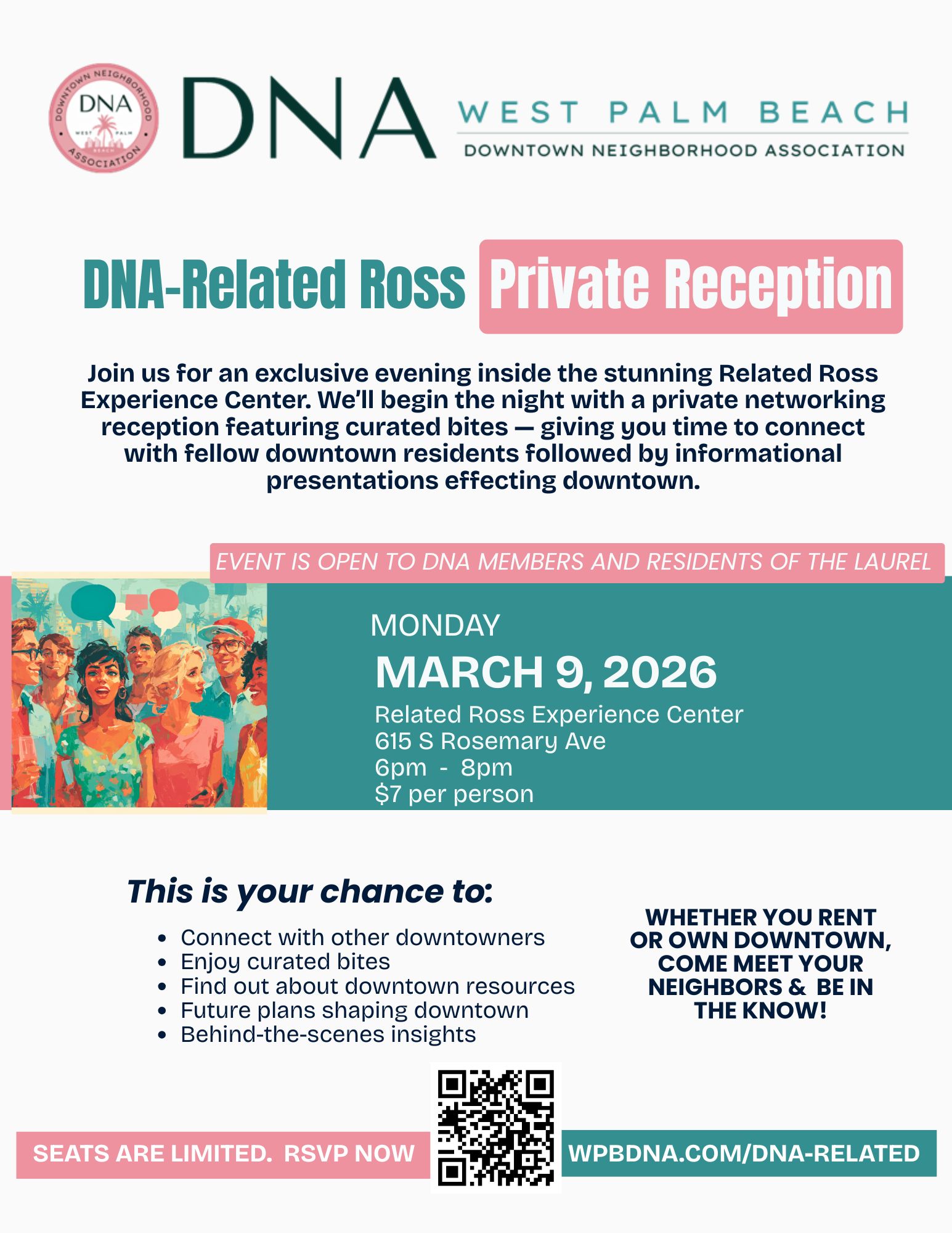 Through Stacy’s Downtown Watch and the Schmidt Report, we’re tracking development, raising concerns, and working with city leaders to help solve issues that affect daily life downtown. This organization is built by residents, for residents — and it only works because of members and volunteers who step up. We invite you to join, renew, or get involved. Looking forward to seeing you at the fabulous March events. Sitima Fowler, WPB DNA President |