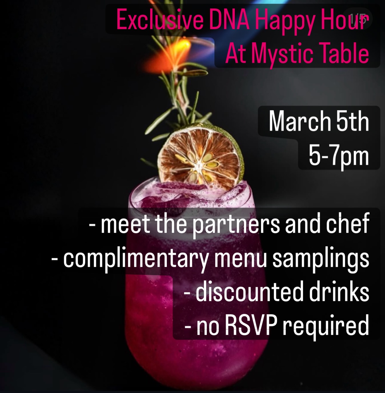 March 5th, 5PM - 7PM, DNA Happy Hour, The Mystic Table WPB
