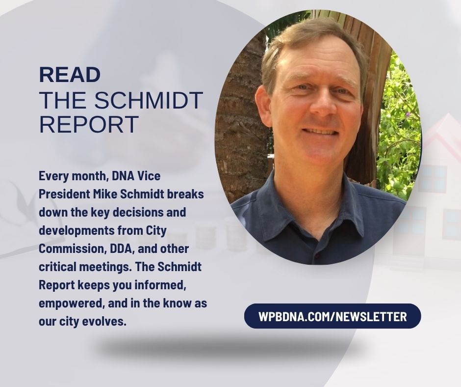 Item 10.1: There was lots of talk about the 800 block of Datura Street. With Vanderbilt University moving in, the WPB Department of Community Services and their 200+ employees need to move out. For some time, Community Services have been eyeing a larger space at the corner of 45th Street and Australian avenue---a 41 acre parcel already owned by the city and occupied by various city offices. At that site, Community Services sought commission approval to build a 4-story office building and 5-story parking garage, which was granted unanimously. Commissioners were emphatic that the surrounding neighborhoods have ample opportunity to hear presentations about the project nearby. Community Services helps veterans, homeless, senior citizens, AIDS patients, etc., and some commissioners wanted reassurance that homeless would not be housed at that facility---and that same assurance would be given to neighbors.
